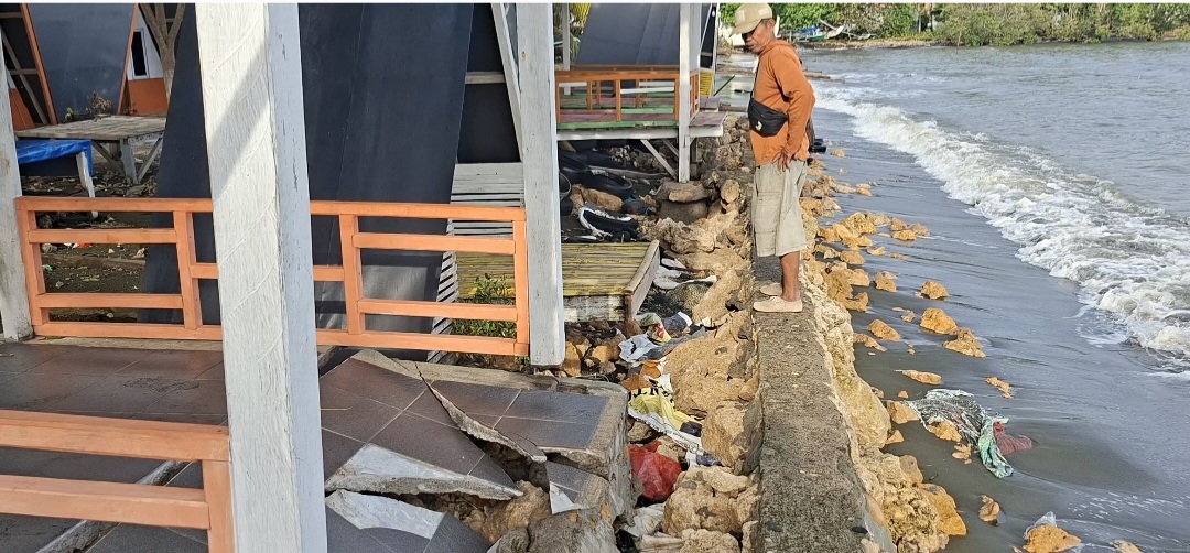 “Gelombang tinggi malam ini membuat kerusakan parah. Tanggul tidak tahan, air laut masuk dan merusak fasilitas. Tanah tergerus 2 meter,” katanya.